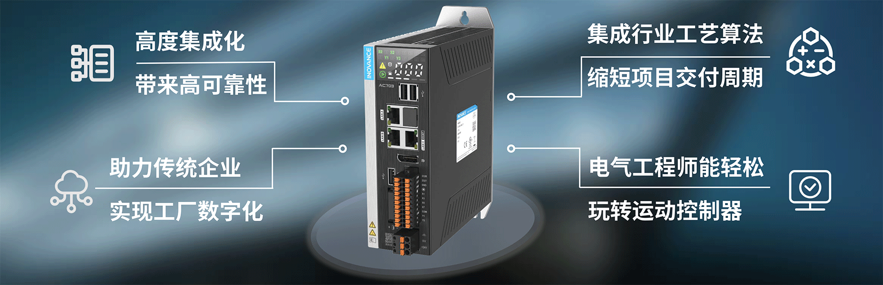 AC700系列書本式智能控制器,是基于Intel X86處理器硬件平臺,符合PLCopen規(guī)范和IEC-61131-3標(biāo)準(zhǔn)的高性能運動控制器,支持ST,LD,SFC,CFC編程語言。標(biāo)配EtherCAT工業(yè)以太網(wǎng)實時總線,可以實現(xiàn)最大32軸同步控制。全系配置兩路千兆以太網(wǎng)口,支持EtherNet/IP與OPC UA等主流通訊協(xié)議,可以輕松的實現(xiàn)生產(chǎn)現(xiàn)場與IT系統(tǒng)的數(shù)據(jù)交互。同時,AC700本體集成UPS(不間斷電源),即無需外接UPS即可實現(xiàn)數(shù)據(jù)掉電保存。匯川在工業(yè)自動化領(lǐng)域超過7年的軟件平臺深度迭代開發(fā)與工藝算法庫積累,使其可以簡單、高效、穩(wěn)定的搭建設(shè)備應(yīng)用程序,尤其在高速、高精、高性能需求的大規(guī)模過程自動化、產(chǎn)線自動化和工廠自動化智能制造領(lǐng)域十分適用。