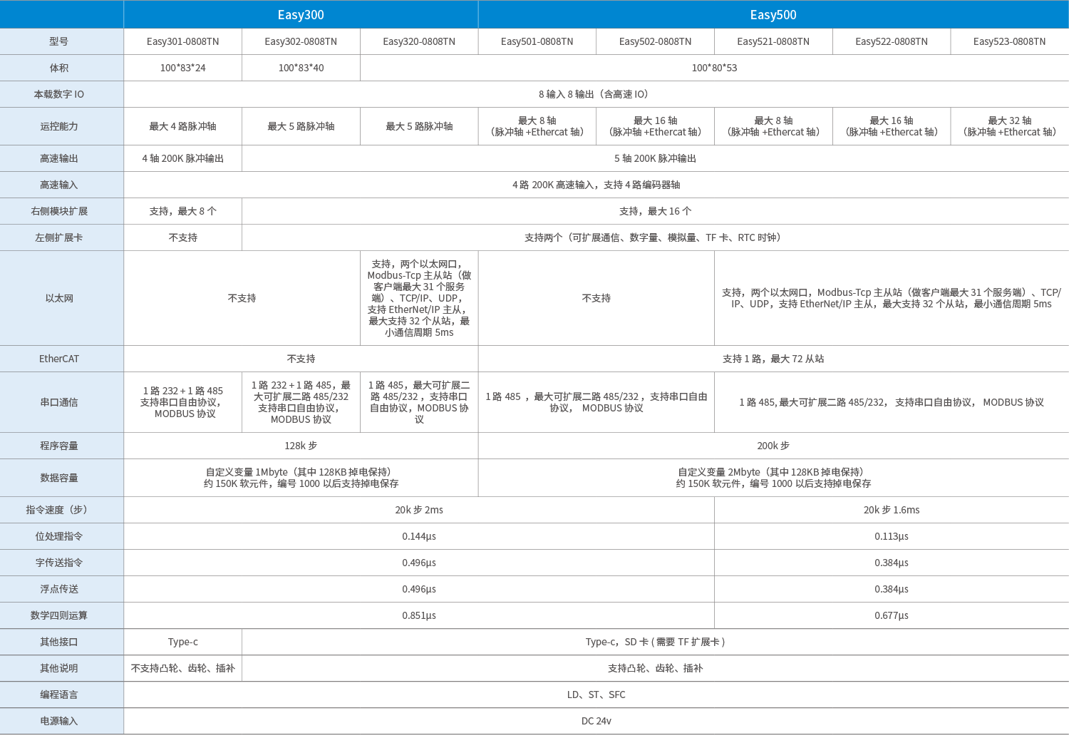 • 全系列 8個機型,輕松滿足嚴苛體積、多軸運控、通信組網等中小型自動化設備需求,用戶端擺脫選型煩惱