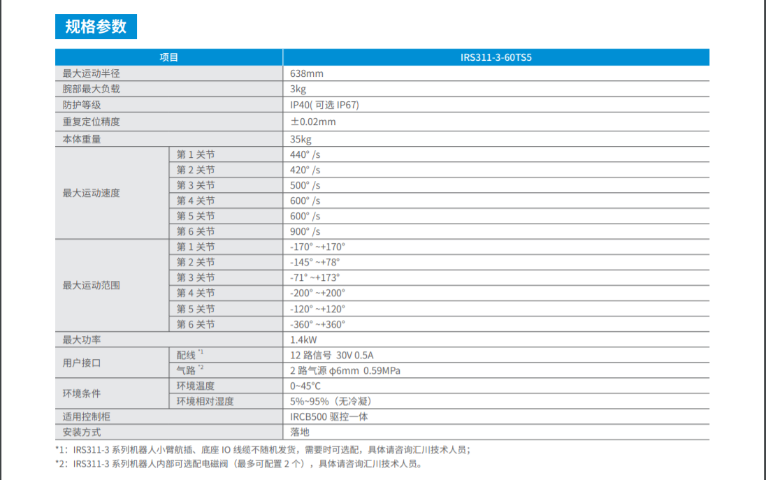 匯川六關(guān)節(jié)機器人IRS311-3系列